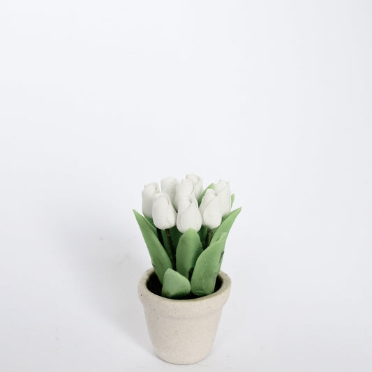 Weisse Tulpen im Blumentopf, Miniatur für das Puppenhaus 1:12